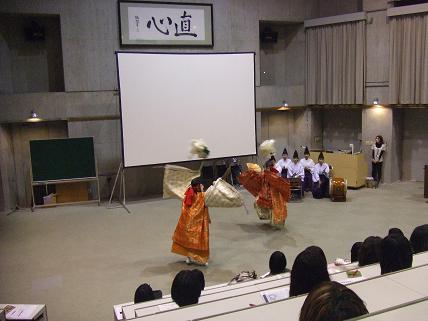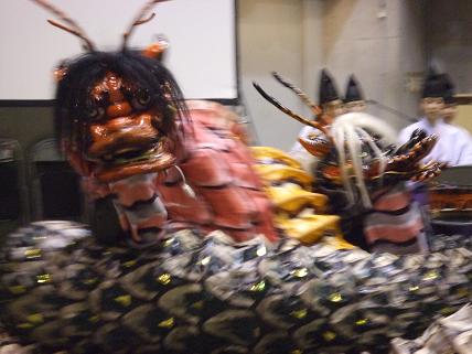 説明会の後の神楽実演ということで、我々京都瓜生山舞子連中も『恵比須』『大蛇』上演という形で参加しました。