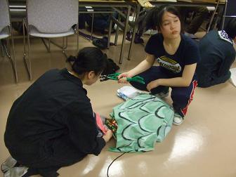 今年の光華高校神楽和太鼓部の新入生が大蛇の頭を片付けていました。横目で見ていると、完璧なまでの畳み方でした。