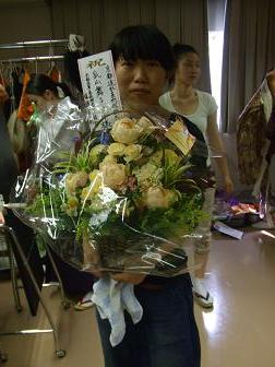 光華高校の神楽和太鼓部の保護者の方々から花束をいただきました。