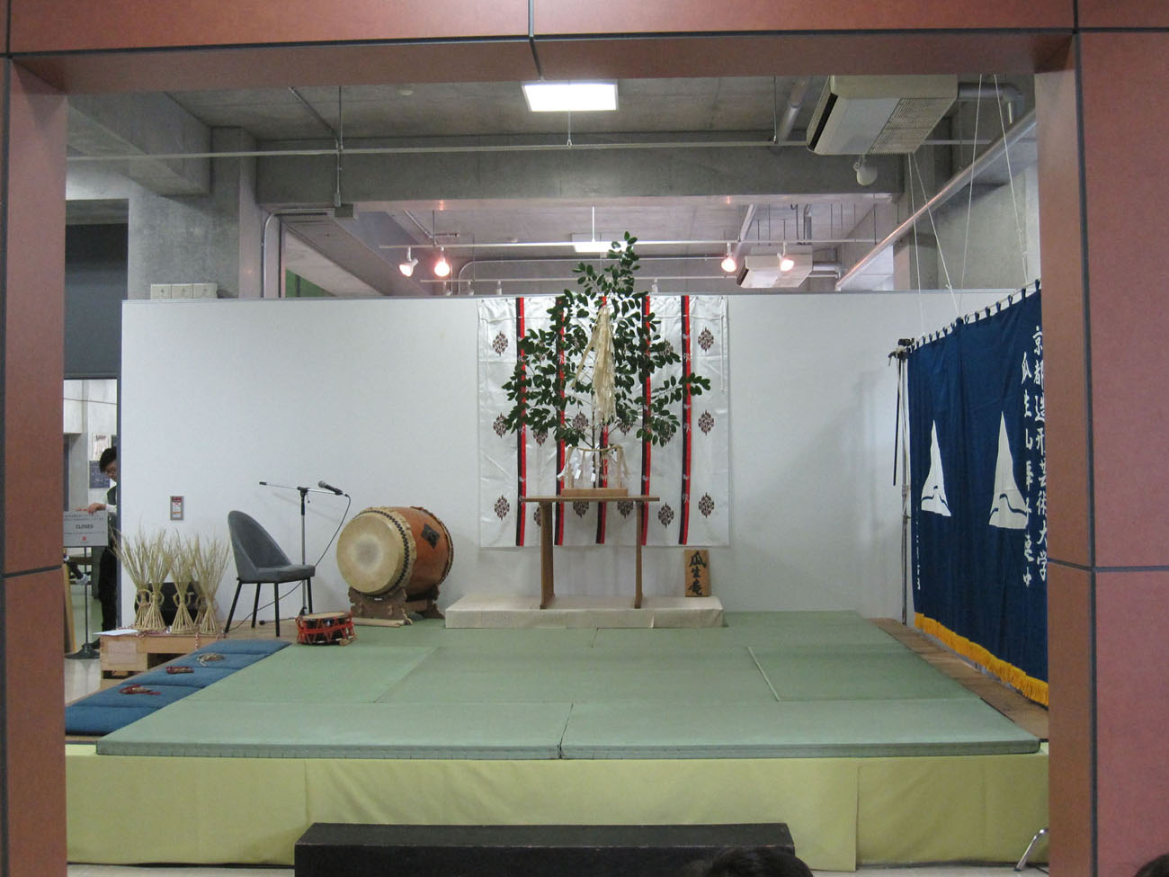 まず、舞台おくには神棚がおかれ、始まる前に粟田神社の宮司さんがこられ、神おろしの儀をおこなわれました。