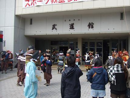 初めてみる石見神楽に側で順番を待ち、アップをしていた人たちも手を止め、見ていたけました。