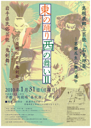 これは、当時造形大4回生で京都鬼剣舞さんに所属されていた学生さんが石見神楽にも関わりを持っていたことから、是非一度共演したいと、自主企画をし実現したものです。