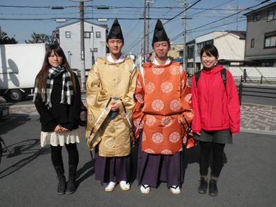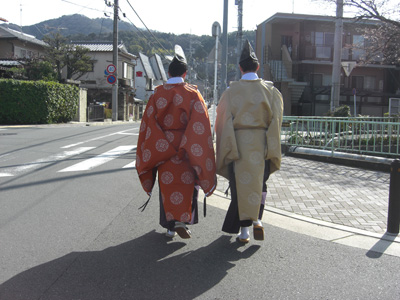 道を歩く狩衣の2人・・・なかなか見られない光景です。