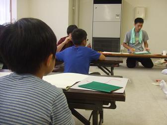 ⇒薄いぺらぺらの黄半紙をしわ一つつけることなく折ってみんさい。