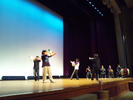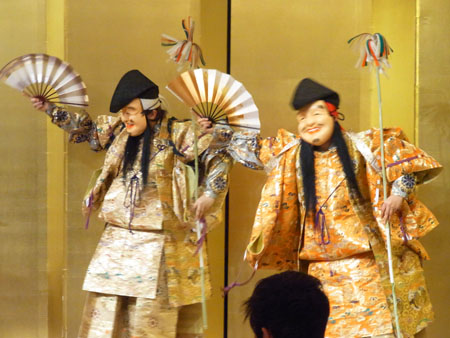 二人がそろい、新たな奏楽のスタートで今回初挑戦の竿での舞!