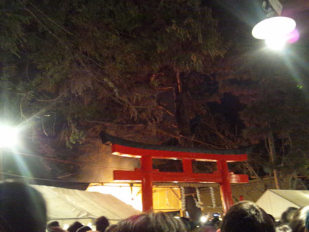 階段下の鳥居で入場規制、手前の鳥居で足止め、実際火を見れたのは一瞬・・・