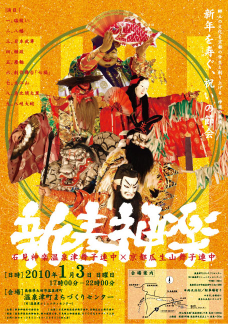 「石見神楽温泉津舞子連中」と京都造形芸術大学の学生による「京都瓜生山舞子連中」とが協力し地域活性化を目指し、