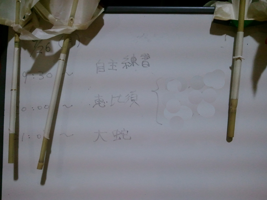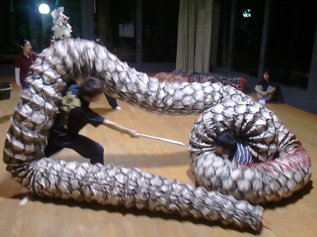 さてさて、瓜生山の演目と言えばやはり恵比須大黒と大蛇!と言う事で、最近の稽古内容も出演に向けてその2つを中心に行っています。